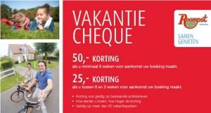 Met de Vakantiecheque Roompot kunt u genieten van aanbiedingen voor het verblijf in bungalowparken, vakantieparken en campings, zowel in Nederland als in Duitsland, aan de kust maar ook in het bos!